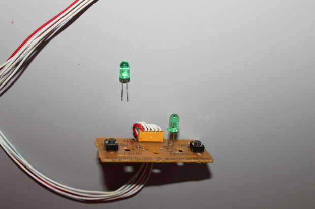 Con un poco de suerte el LED puede encontrarse también en la impresora desechada. Con aún más suerte puedes encontrar algunos electrónicos descartados con un LED parándose sobre una placa de circuito impreso, con la mayor parte de sus piernas aún intactos, en lugar de rubor montado en el tablero. Esto hace más fácil quitar de la impresión (deje las piernas tanto como sea posible) y más fácil de conectar al motor paso a paso introduciendo simplemente en el enchufe. Como alternativa sea Estados Unidos una nueva LED o uno desoldar y soldar a los conductores del motor paso a paso (supongo que es difícil decir si el impacto ecológico más pequeño para el uso de un nuevo led o para soldar (de)).