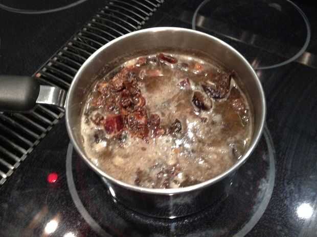 Otra vez Compruebe sus frutos... Le dan un gran revuelo... El agua debe ser completamente marrón y la fruta se debe conseguir fofo, pero todavía reconocible.