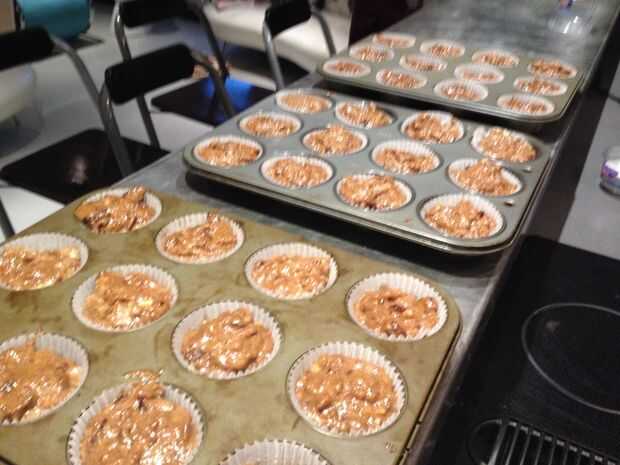 Estas magdalenas tienen una masa bastante pegajosa, y también está lleno de pedacitos de la fruta que no hace fácil de separar en tazas.