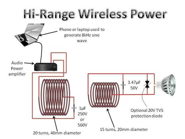 Construir un sistema de transmisión de energía inalámbrica que puede una bombilla de potencia o carga de un teléfono de hasta 2 pies de distancia! Este utiliza un sistema de bobina resonante enviar campos magnéticos de una bobina que transmite a una bobina receptora.