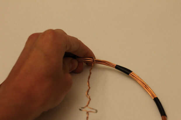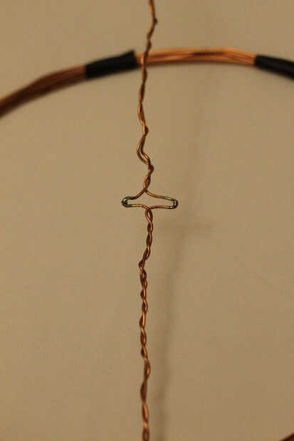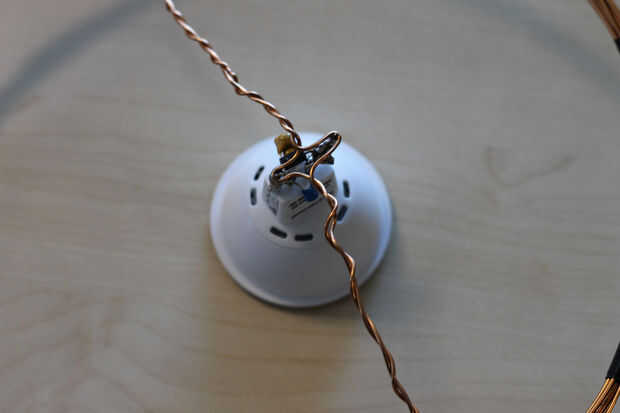 Después de que la soldadura de los condensadores, necesita torcer los extremos del cable de la bobina por todo el centro de la bobina. El cable es lo suficientemente rígido para apoyar la bombilla. Después de retorcer el cable por todo el diámetro, vas a cortar los extremos del alambre y dejarlos abiertos.