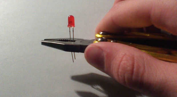 Consejo: recorte los extremos de los terminales del LED para que no torpemente pegue hacia fuera de la bobina del receptor