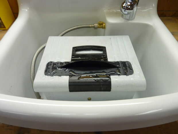 Ahora, he re-diseñarse mi diseño para que pueda una vez más retirarse a la seguridad de mi tienda y lave mis archivos hay... En la paz. Sólo esta vez, ambas partes van a lavarse a la vez, con ninguÌ n lío, un aplicador de detergente automático, una vuelta one-handed fácil del disco y una mano libre para hacer otras cosas mientras que conseguirán limpiar mis registros.