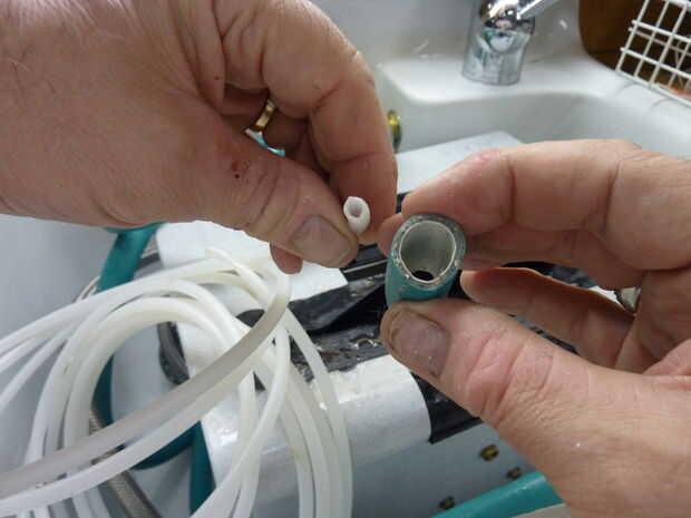 So... Con esto en mente, he modificado otra vez mi caja de limpieza de discos, así que podía atacar a las perdices con tanta energía como sea posible. Estoy limitada a 60 psi en la entrada, así que aquí está cómo conseguí mucho de eso como pude a la superficie del disco: