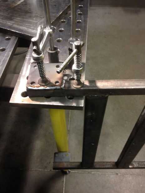 Soldar estas placas en la parte de la estructura base, para crear una pestaña de la rueda se deslice a través de uno de los orificios existentes.