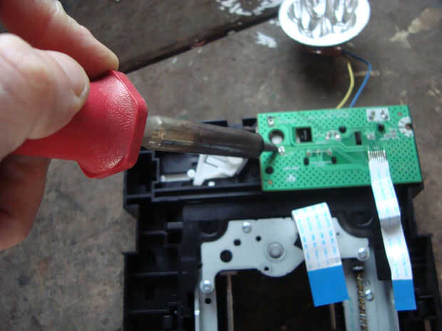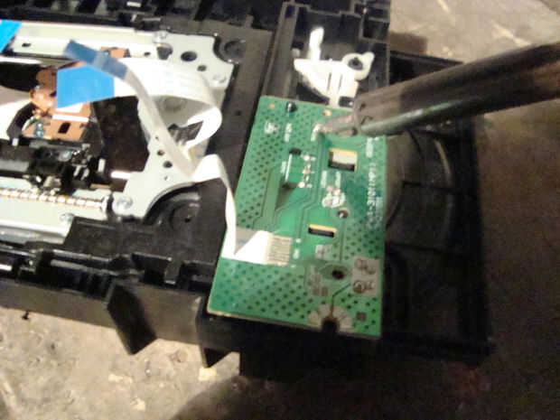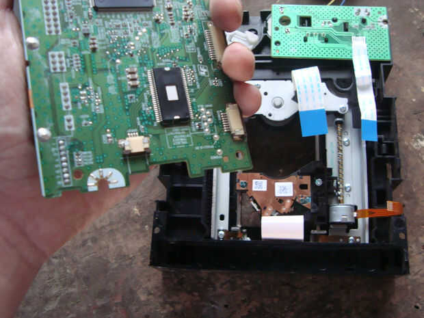 Una vez adentro solo hay retirar todos los Flex y las placas, hasta encontrar el pequeño motor que abre/cierra la bandeja.
