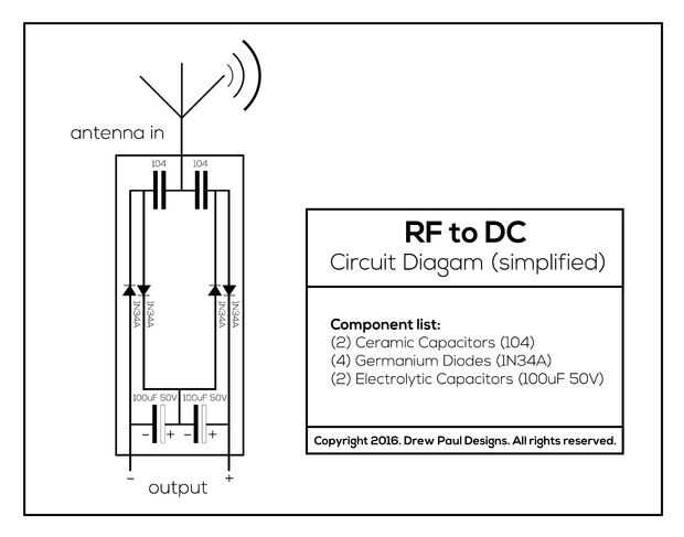 Energía en la banda de ondas de radio, entre otros, harán vibrar a una antena de alambre en un nivel atómico, enviando una señal discernible a su liderazgo. Esta señal entonces reunirá a la unión entre los dos condensadores cerámicos conectados en serie. Este cruce fuerza la carga positiva de la onda que viaja en una dirección y carga negativa en la otra dirección que, cuando otra vez, hace la señal uniforme y polar. Conectan los dos condensadores en serie crea lleva en cada extremo; el ahora positivamente cargados de uno y la ahora negativamente cargado del otro crean una batería de dos celdas.