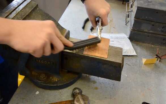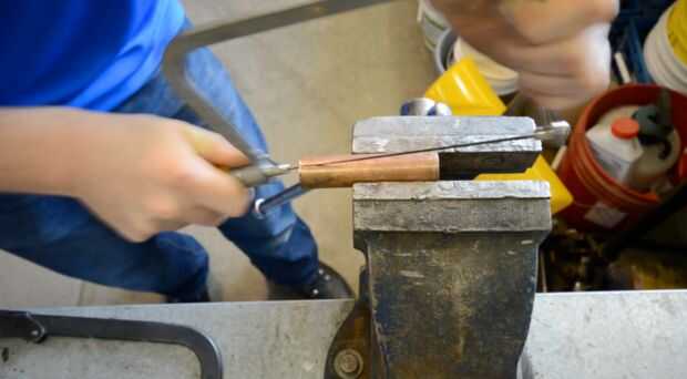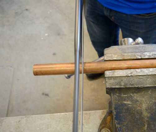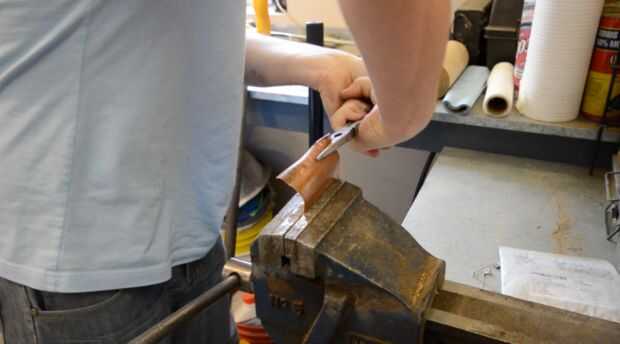 Parte 3 – lugar del tubo de cobre en un vicio y a partir de un extremo cortado a través de un flanco a lo largo de toda la longitud de la tubería.