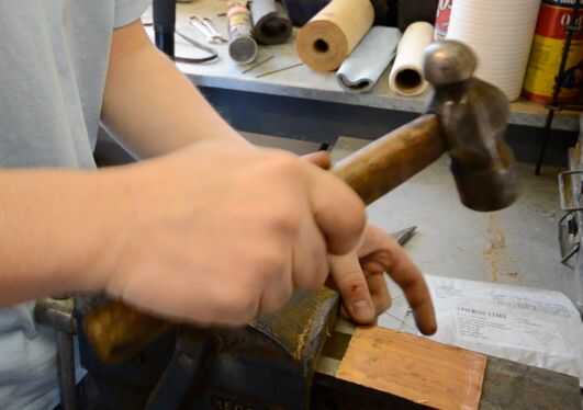 Parte 5 – libra el tubo de cobre en un plano de la placa con un martillo sobre una superficie rígida (por ejemplo, un yunque o metalúrgico vice).