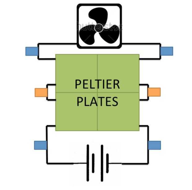 Las placas Peltier de (Seebeck) deben estar conectadas en serie, que si ellos están conectados en paralelo y una placa Peltier empieza a fuego y deja de usar por su parte justa de la energía sobrante, los otros comenzará a transferir el calor aún más rápido, freír el Peltier que comenzó flojo rendimiento. Porque ellos están conectados en serie, si una placa comienza a fuego todas las placas experimentará una caída de tensión, causando menos calor para transmitirse al disipador de calor, permitiendo que todas las placas que se enfríe.