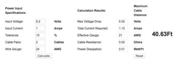 • La corriente usada por el dispositivo de potencia es un parámetro clave en la determinación de la distancia. Según wikipedia de frambuesa pi, la corriente máxima para un pi es 0.8Amp. He utilizado 1Amp.