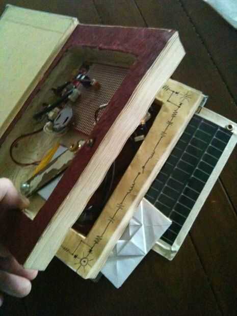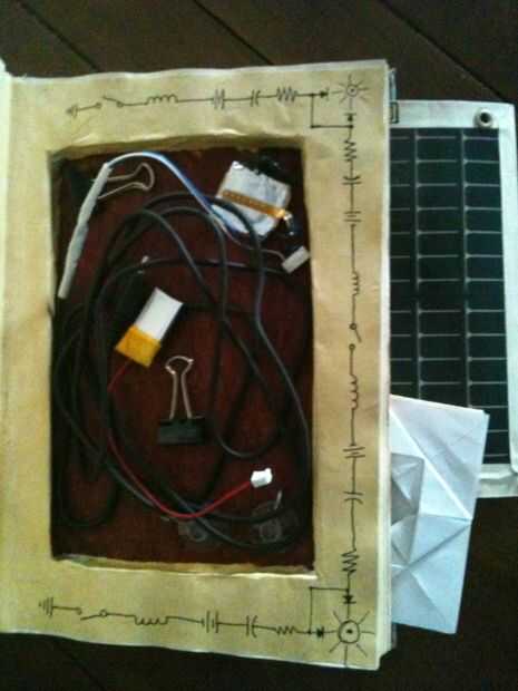 Esto comenzó como un solar powered 3v/5v de alimentación y teléfono cargador en un libro. Convertido en una evolución y proyecto en continua expansión. Tiene un circuito de carga que carga varios tamaños de litio las baterías de polímero que a su vez proporcionan la fuente de energía para las fuentes de 3v/5v reguladas. Puede ser cargados en la página de solar en el libro, USB o hierba de la pared con un cargador de 5v. Tiene un circuito para cargar mi teléfono u otros dispositivos usb. Más tarde, pongo en un microcontrolador Arduino, un altavoz, micrófono, célula fotoeléctrica y algunas luces. Lo uso como un banco de pruebas portátil para circuitos y código. Tengo intenciones de más sensores y salidas en el futuro también.