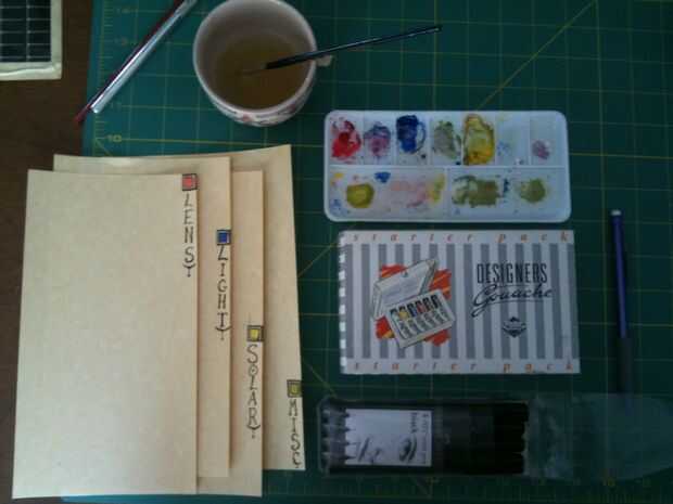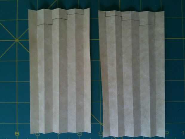 Entre la tapa y el fondo compartimiento es una carpeta de acordeón para el almacenamiento de páginas y tal. Primero, corté dos pedazos de papel del mismo tamaño. Entonces ellos doblé estilo acordeón. Medido y un paso atrás para los divisores. Luego, corté tres divisores de que cada uno es una media pulgada más ancho que el lado acomoda el stepbacks cortar el papel doblado. Había etiquetado los divisores y me pega los bordes de los pliegues correspondientes en papel doblado. Las pestañas se pegan en el libro. Nuevamente, tenga cuidado de no pegarla cerrada.