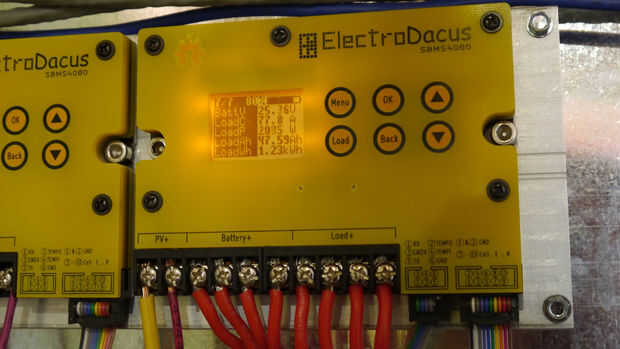 Primera foto es con la salida de energía máxima casi sobre 77A segundo es con el máximo que visto desde el arsenal del picovoltio 720W 29.2A cerca fuera de la temperatura -22 C entonces hay una foto durante la instalación (es más complicado en mi caso ya que quiero automatizar toda la casa y tengo una instalación de SBMS más pequeño con un 0.5kWh batería de reserva)
