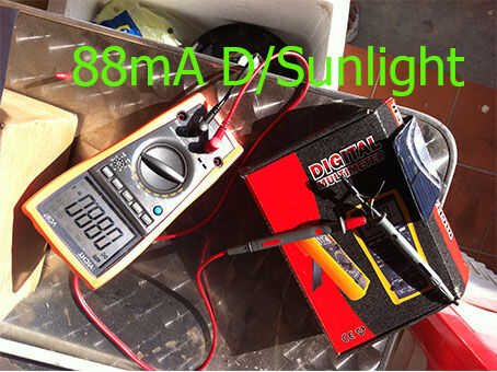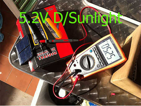 ENCONTRAR - el SOLAR del PANEL compró está en buena condición pero fuera de especificación (mide: 88mA espec. dado: 150mA). TRABAJA BAJO LUZ SOLAR DIRECTA 5.2V Y MAYO NO SE TRABAJA BAJO SOMBRA 3.9V PARA ESTE GADGET. PARA HACERLA FUNCIONA TENEMOS NECESIDADES AL PASO HASTA QUE VOLTAJE A 5V.