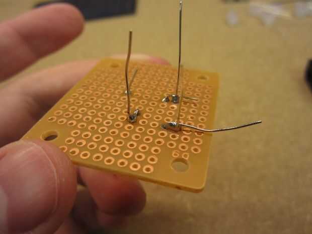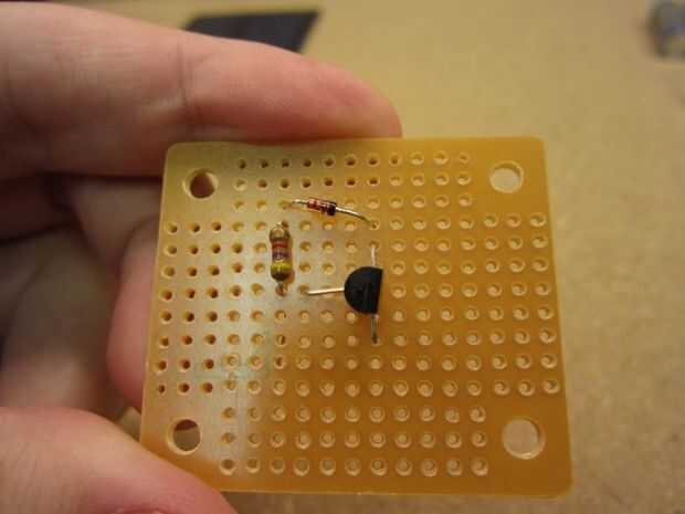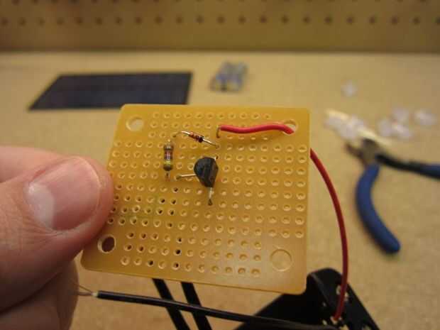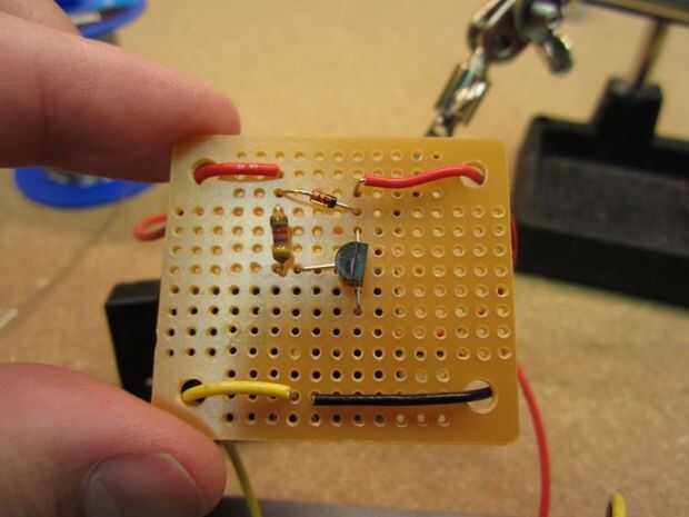 Antes de ponerse en marcha, probar esto en un protoboard. En serio. A pesar de que he hecho este circuito 100 veces, todavía logró poner el transistor en el al revés! (Que no a todo el mundo leyendo esto, el TRANSISTOR está en al revés en todas mis fotos hasta el final.)