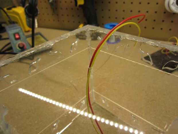 Antes de conectar todo, asegúrese de que usted pase los cables a través de la parte superior de su "efecto invernadero" que vas a tener que cortar los cables para el tablero del LED.