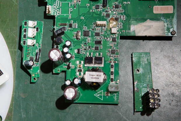 Tenemos que eliminar la electrónica de la parte inferior de la placa de plástico blanco quitando todos los tornillos con arandelas de seguridad.