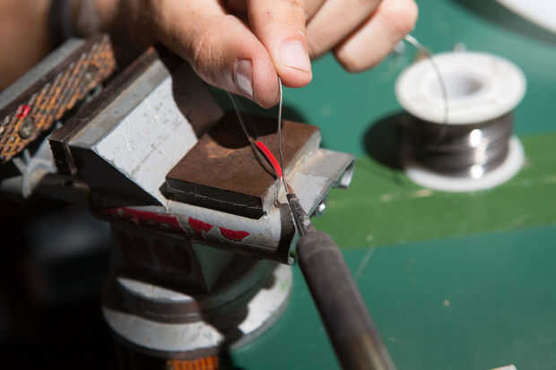 Paso 12 - los extremos de los cables con soldadura de estaño.