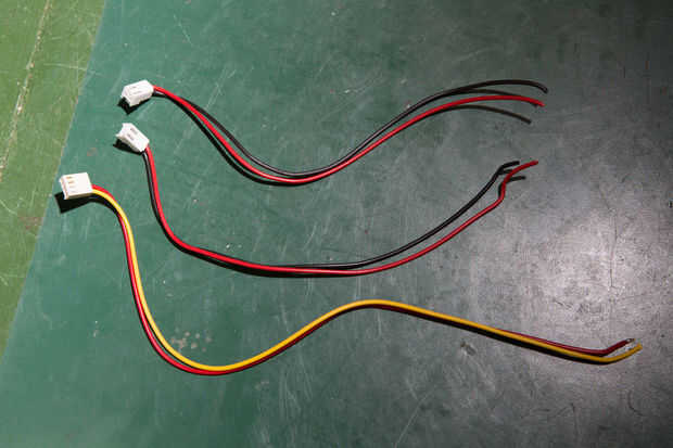 Deslice las cubiertas de plástico negro de los cables. Identificar el paquete de cable amarillo y rojo (Foto 1) y cortar segmentos de 3cm de largo x 2 del cable rojo. Pele los extremos de los cables. (Foto 1, 2, 3)