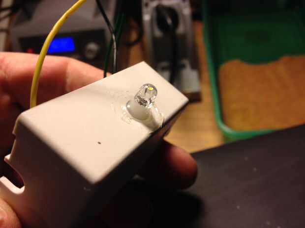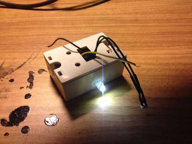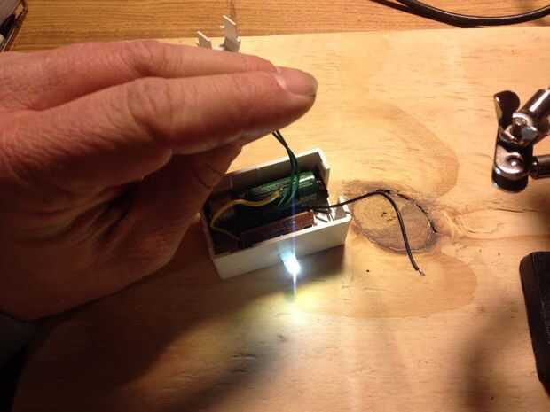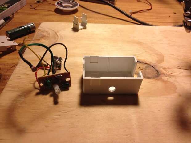 Encontrar una forma para montar las conexiones de la batería para mantener la batería en su lugar y perfore un agujero en la caja para poner la luz. Arreglar el alambre según sea necesario y cosas de pegamento en el lugar donde le parezca.