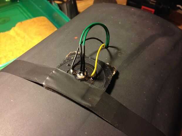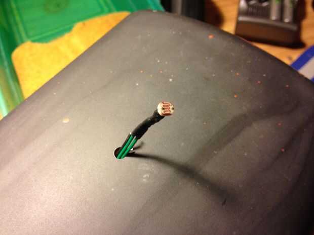 Pase la fotorresistencia y los dos cables del panel solar a través del agujero y volver a soldar las conexiones. Elegí pegamento caliente el fotorresistor a la ventana en el centro del panel ya era parte del diseño original. No veo la necesidad de apartarse de eso - esto era una configuración perfecta en mi opinión!