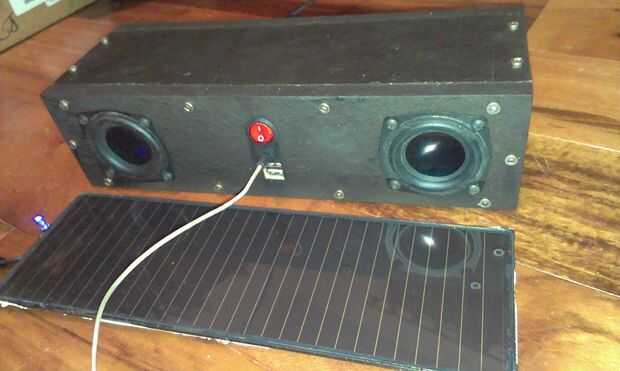 Fue a buscar a un conductor asequible gama completa pequeña con bajo decente y el Dayton Audio ND-65 en partes Express. Me encanta a este conductor, con su cono de aluminio puede soportar mejor que metidos en un paquete. Ya tenía un amplificador de 2x15w TA2024 pero tuvo que diseñar un circuito de carga para redondear la electrónica requerida. Pasé por 2 iteraciones en el diseño de la caja, el primero fue probar cómo baja obtendría los altavoces en un pequeño recinto que parece dejar a la derecha alrededor de 105hz. Pero realmente podría reducir el recinto y sintonizar a aproximadamente 75Hz sin ningún gran impacto en la 105Hz que me metía antes. El recinto final terminó siendo 12,25" L x 4.25" W x 3.25" H (fuera de las dimensiones) de contrachapado de abedul de 1/2". La longitud y la anchura eran decididos por el tamaño del panel solar que quería utilizar, la altura fue dictada por la altura del conductor.