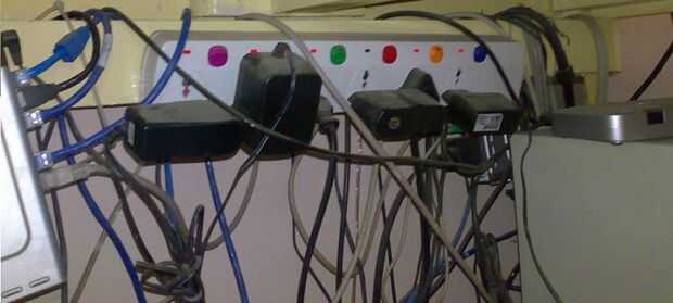 Finalmente la obtiene de la tira de la energía de alimentación del inversor. En la imagen pueden ver mi interruptor de Ethernet por cable en el lado izquierdo y mi caja de sintonización de TV externa en el extremo derecho. Y todos estos están enganchados a la regleta como ya he mencionado en el cuadro de configuración básica. Puedes ver los LEDs de la regleta y así puedo conseguir energía totalmente de los paneles de desconectar todo de la fuente de alimentación de red.
