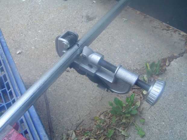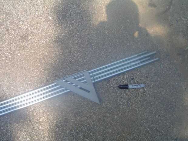 Soldar el tubo a la rejilla solar, con la rejilla puesta sobre el terreno y los "montantes" hacia arriba de él. Se voltea el bastidor y debería ser aproximadamente un bastidor de escalera de camioneta.