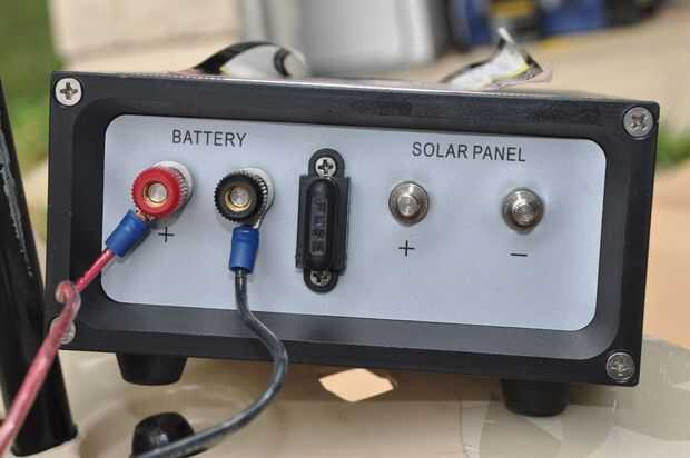 El cableado es muy simple. Los paneles solares van al controlador de carga, y el controlador de carga solar va a la batería. Asegúrese de observar la polaridad correcta. Rojo va a la + positivo de la batería y el controlador de carga y el negro va al - negativo.