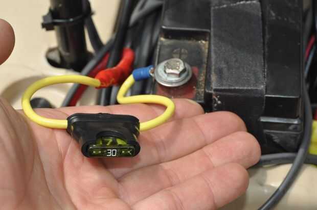 La marca Power Wheels de batería los fusibles para los coches se construyen en la batería. Si utiliza una batería regular, necesitará añadir un fusible. Usé un portafusible en línea típica de la tienda. (30 amp., fusibles del automóvil 12V.)