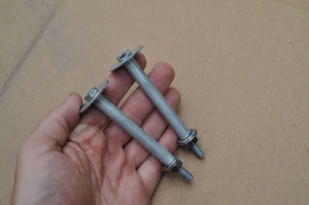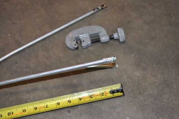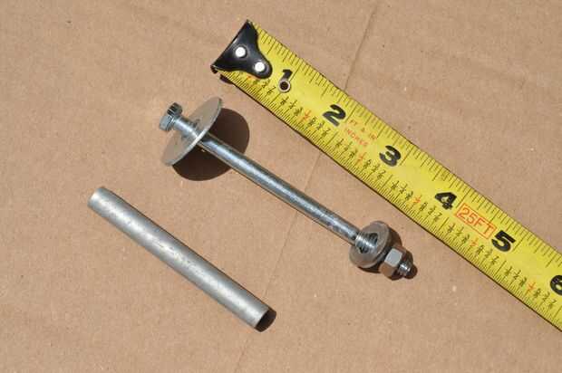 Los espaciadores son simplemente chatarra aluminio tubo de un diámetro que un perno se deslice bien. Corté dos trozos de tubo (con mi cortador de tubería fiel!) a cerca de 4.5" de largo.