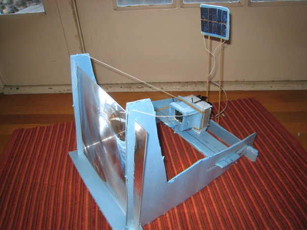Sólo necesita algunas piezas baratas para construir uno. Es bastante fácil de construir y muy simple. Lo que sé, mi idea de la combinación de refrigeradores termoeléctricos y lentes de Fresnel es original... pero es probable que no.