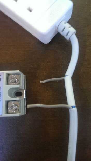 Tire un lazo del alambre vivo (marrón en el Reino Unido) y corte por lo que es bastante sobresale para conectarse a su servidor y luego hacer un segundo corte en la envoltura de la distancia entre los contactos del relé a la izquierda y tiró el otro extremo del lazo a través.