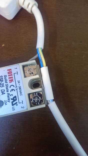 A continuación el final de los dos cables que sobresalen de la tira y tornillos en las terminales de carga de relés.