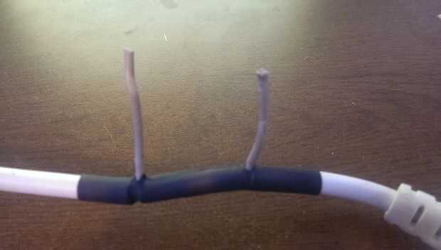 Hacer un corte en la envoltura del cable de extensión donde desea su relé que, puede ser difícil de evitar mellar los cables interiores, el cable de la flexión y estirar así la envoltura ayuda.