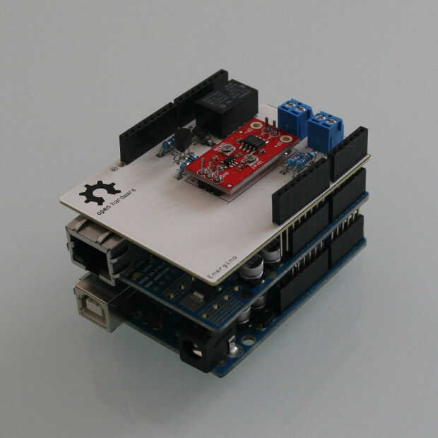 En las fotos puede ver el escudo de Energino en la parte superior sea un Arduino UNO o un Arduino UNO + Ethernet Shield.