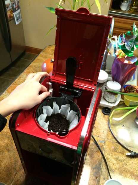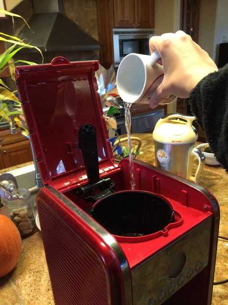 Verter cantidad necesaria de agua en la cafetera de café. Inserte el filtro con motivos en punto requerido.