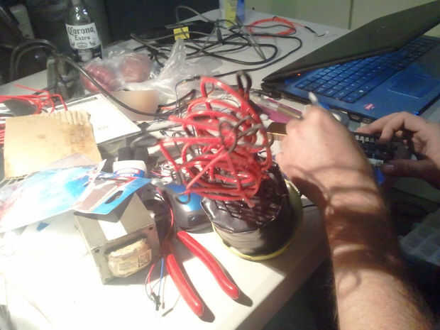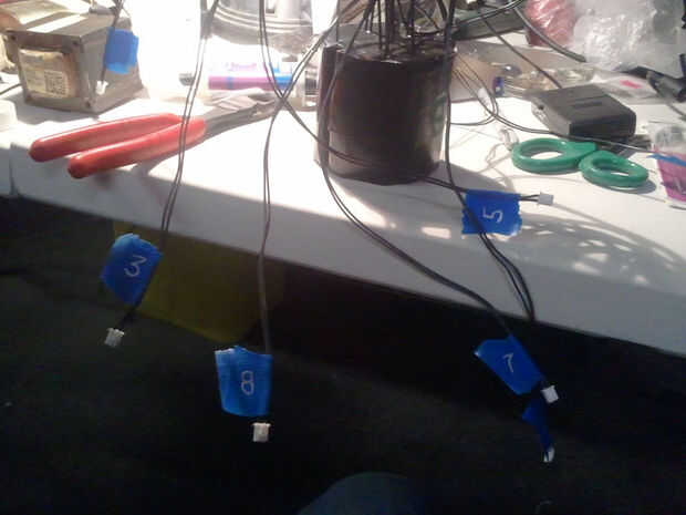 Con todos los dígitos en la base, ejecutar los cables del conector en las ranuras en la base. Que surco los cables van a depende en qué lado él está más cerca de... Creo que terminó con 4 a un lado y 6 por otro.