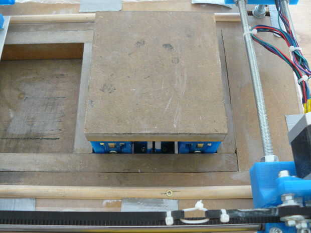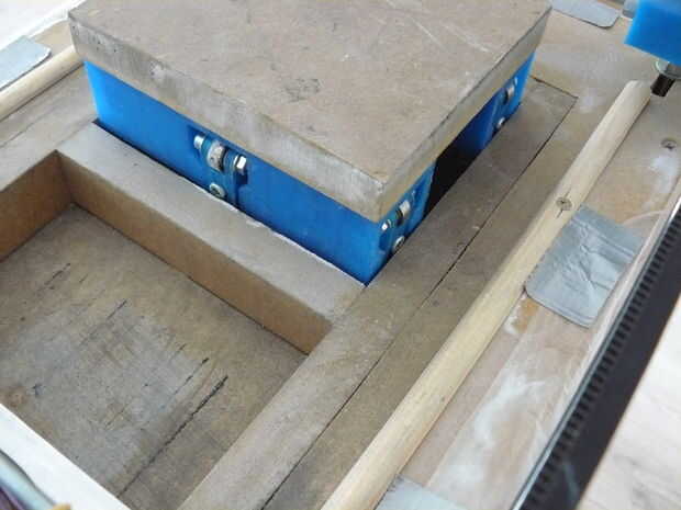 Ahora que los motores tienen potencia, puede insertar los pistones. Deben tener suficiente espacio para moverse libremente, pero no tanto ese polvo puede escaparse en el boquete. Cuando está seguro de que el pistón se ajusta, puede conectar los cables del pistón a las rampas y activar los motores para que se muevan hacia abajo. Si hiciste bien los pistones deben bajar rectos y lisos. Si no, lije los bordes de los pistones más o ajustar el wallguides.