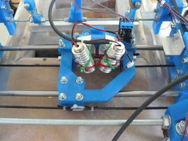 Para colocar el láser, puede imprimir un montaje, o construir algo a ti mismo. No he incluido las piezas para el montaje de un láser porque no sé qué tipo de montaje utilizará. He hecho mis soportes de Perfil de aluminio y atar rips.