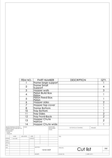 - El primer corte es el corte con las paredes de la tolva y dos pistones. Por este corte de una sola vez son todas la misma anchura. De esta manera solo necesitas algunos lijar mínimo para hacer los pistones encaja perfectamente.