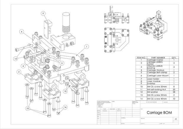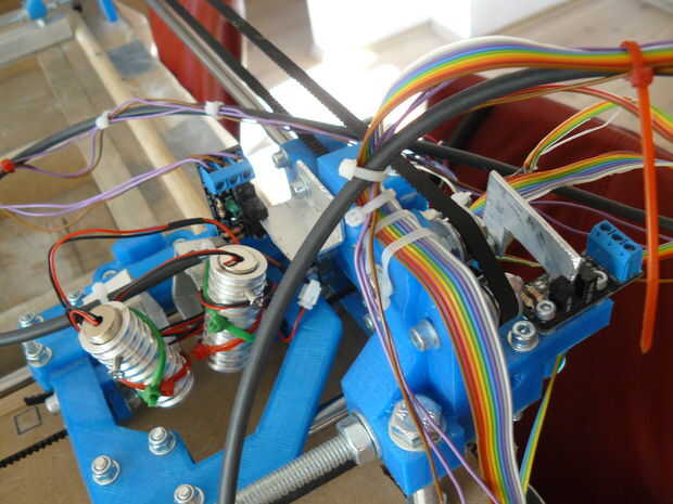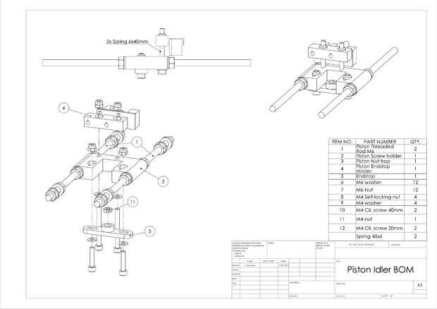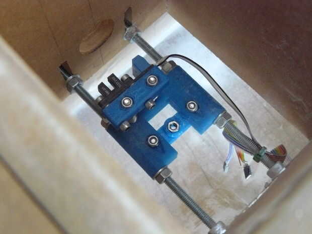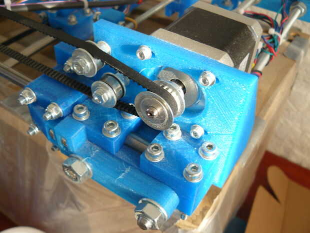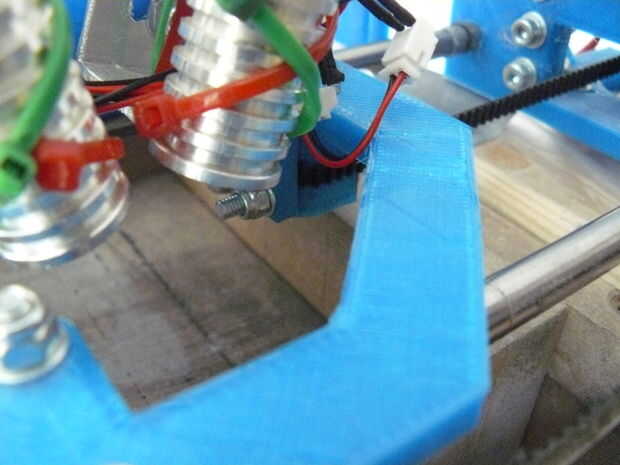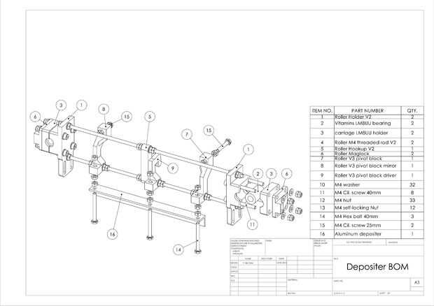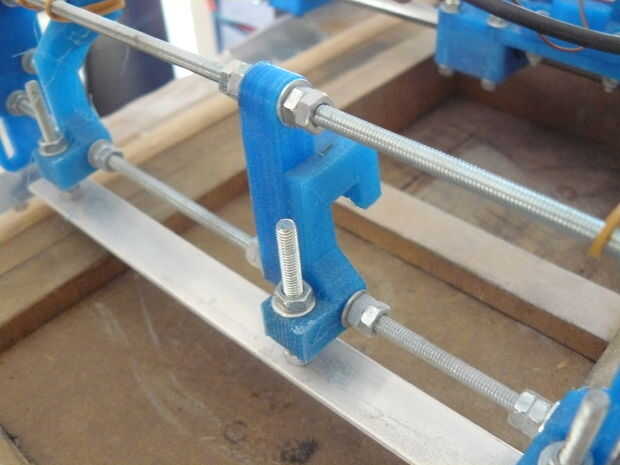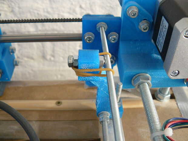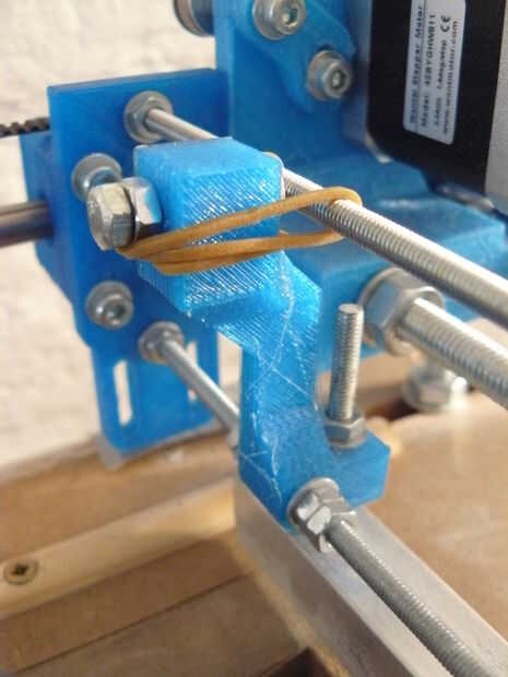Mayor parte de la depositante se monta en la varilla roscada M4. Porque estas partes necesitan apretarse de ambos lados, no es posible utilizar tuercas de fijación del uno mismo. Para solucionar esto un par de tuerca normal se utiliza. Por apretarlos uno contra el otro, entonces puede fijarse en cualquier punto sin fijación con abrazadera en partes.