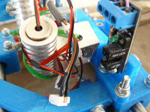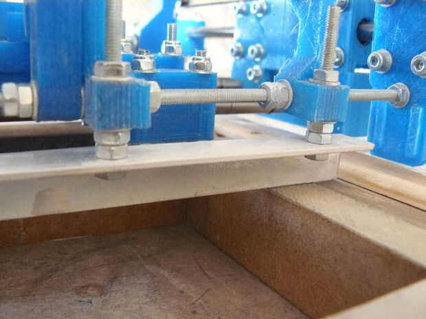Hay varias piezas pequeñas en el depositante que necesita para moverse libremente. Todas estas partes están conectadas a la tira de aluminio que hace el depósito real. Tiene que poder girar y levantar un poco el perfil de aluminio, para tener más espacio libre sobre la capa recién depositada.