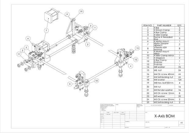 Notas para todas las partes: Utilice siempre que sea posible y trate de seguir perno orientaciones lo mejor posibles. También no apriete las abrazaderas de cojinete de LM8UU demasiado apretado. Mantenerlos loos(ish) hasta el montaje final y apriete hasta que el no dar más. No apriete demasiado porque esto le dará mucha resistencia no deseada en los ejes.