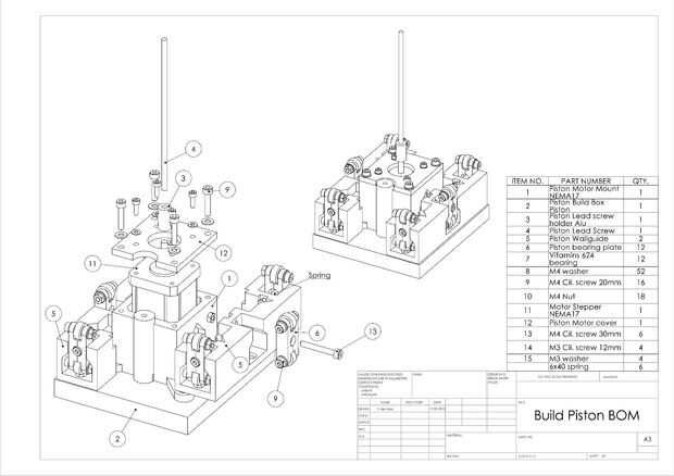 Los soportes del pistón tiene la trampa de tuerca ajustable utilizan los pistones moverse. Asamblea todos impresos piezas primero. Puede Agregar la varilla roscada M6 cuando se monte en las ranuras en la tolva. Las paredes de la tolva de la abrazadera en ambos lados. Cuando sólo pinza en el exterior de la tolva, se podría doblar hacia adentro y jam los pistones.