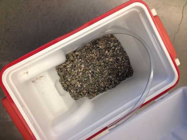 - Una vez hecho esto, poner una capa grande de filtración arena encima y luego nivelar.