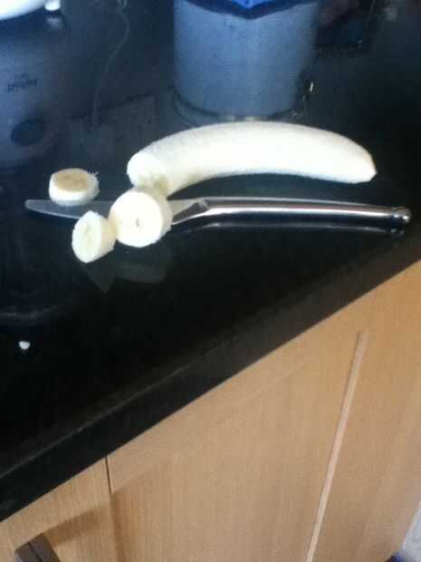 Obtener una banana y pelarlo y luego trocear