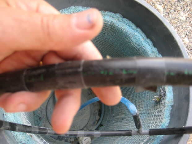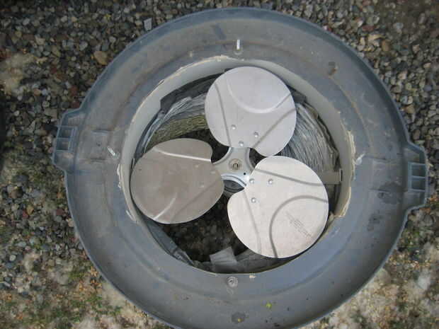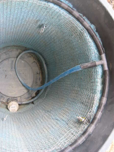 Primera foto cuerpo muestra completado sin tapa. Las tres vistas están mirando hacia abajo en la nevera, mostrando la bomba y la tubería de goteo. El siguiente es una vista de la parte superior con ventilador instalado. Luego, una vista de todo esto juntos y en uso. El panel solar no está en vista.