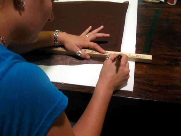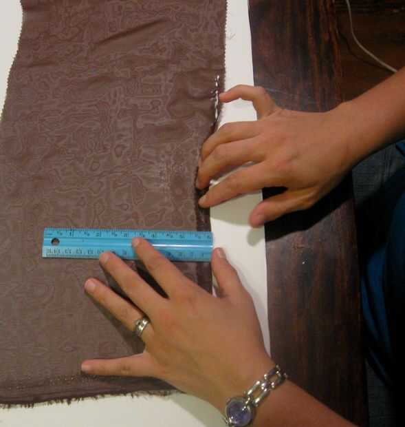 Coloque la tela y el uso de borde recto (como una vara) para comprobar que los bordes fueron cortados rectos. Si no, recortar el exceso. Medir ¼" desde el borde de la tela y subir un dobladillo; hierro a arrugarse. Utilizar gotas de pegamento en el borde para pegar en el lugar. Una vez que el pegamento se seca totalmente, coser el dobladillo hacia abajo.